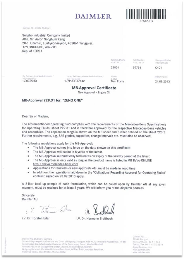 최고급 합성오일 ZENQ ONE GP-1 0W20